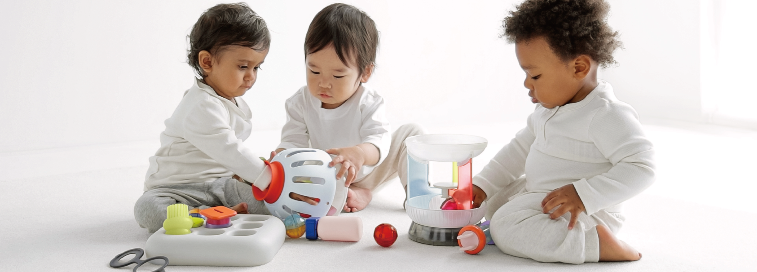 Designed by studying the natural curiosity of young toddlers around the world, our toys encourage trial and error in their use and combination. Children play with them gleefully, with one “curiosity” leading to the next, triggering an ongoing chain of discovery as they grow.