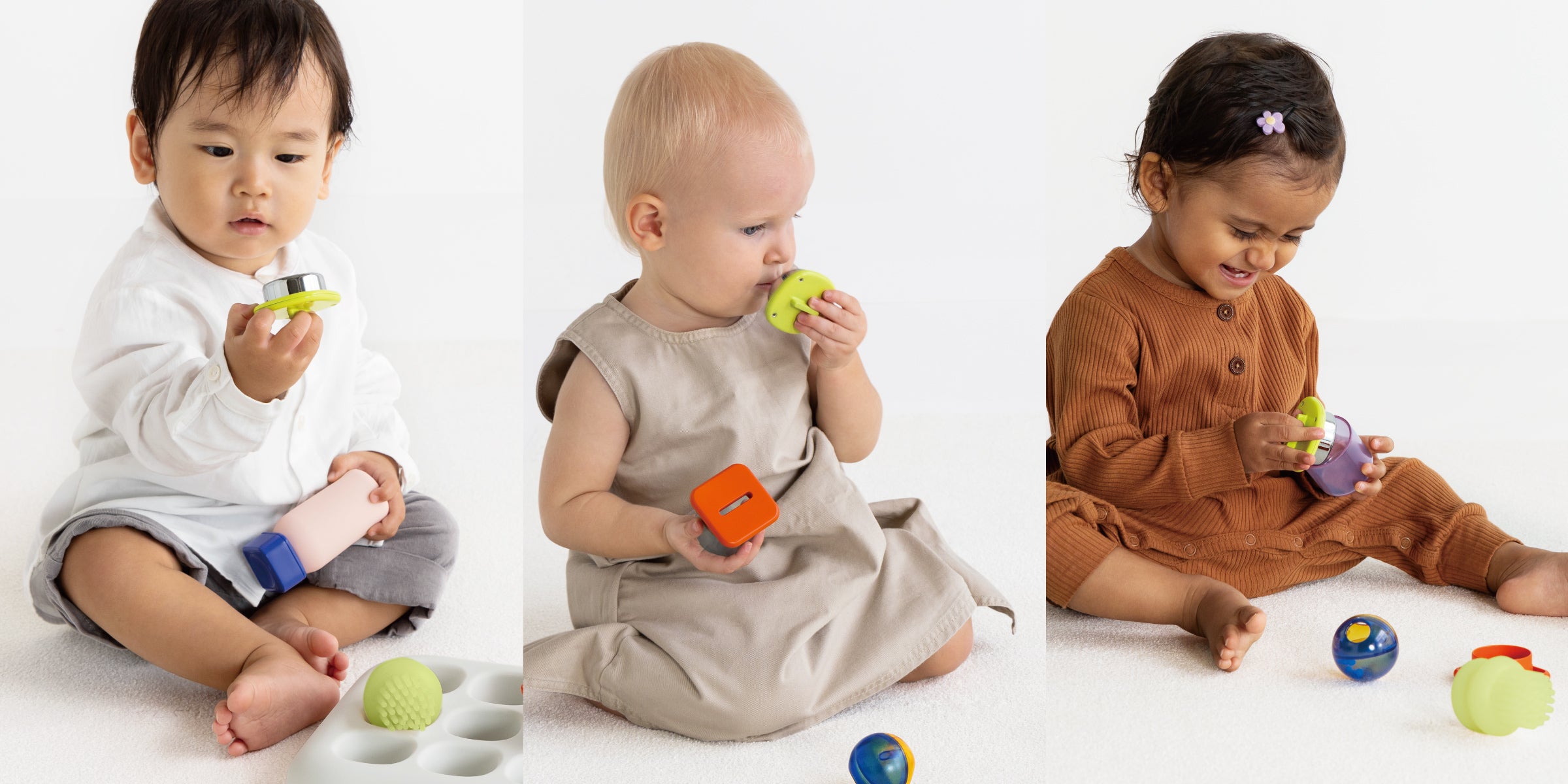 We turned young toddlers’ favorite brushes into a toy that’s all about texture! Inspired by hairbrushes, cleaning brushes, pastry brushes, and makeup brushes, this design has soft bumps that are impossible to resist.
