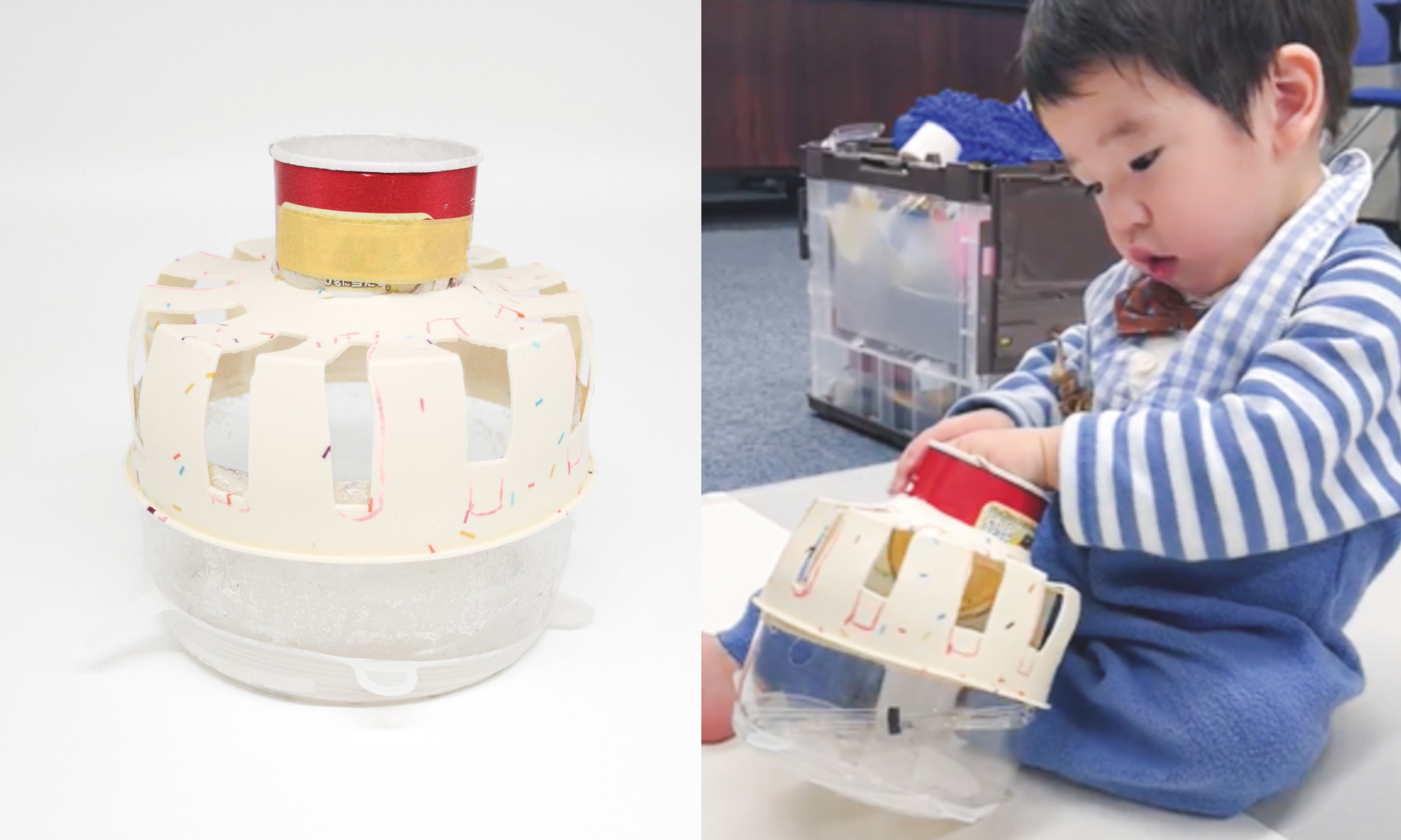 By observing how children play with tissue boxes, we broke down exactly what they love about them: a shape that's easy to grab, holes for putting in and taking things out, a satisfying pull when taking things out, and a sense of endlessness.